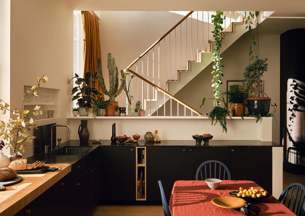 Когда архитектор Nathaniel Mosley покупал эту двухуровневую квартиру в викторианском доме в Лондоне, он знал, на что шел: несмотря на прекрасный характер, жильё нуждалось в серьёзном переосмыслении. Изначальное зонирование было слегка устаревшим, а комнаты тёмными и неудобными — нужно было решение для максимизации естественного света и лучшего взаимодействия пространств. И таким решением стала лёгкая новая лестница, которая заменила громоздкую старую. Теперь пространства квартиры стали намного более открытыми и светлыми, и хозяева даже смогли наполнить интерьеры большим количеством живых растений. Приятного просмотра!