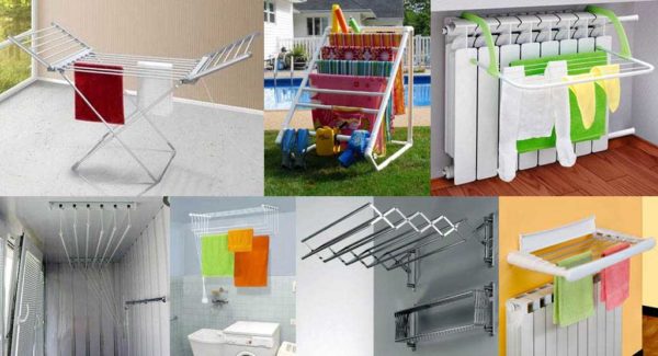 Из названий понятны особенности установки каждой модели. Могут потребоваться только пояснения по поводу навесных бельевых сушилок. Они обычно небольших размеров — длиной 60-100 см, на 3-6 веревок/перекладин (на фото).