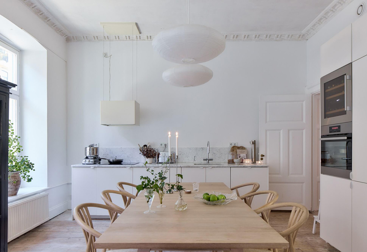 Есть что-то особенное и притягивающее в белых скандинавских интерьерах. В этой квартире на первом этаже в Мальме высокие потолки и просторные комнаты, но дизайнеры тем не менее выбрали минимализм и всепоглощающий белый цвет для оформления её интерьеров. Кухня довольно компактная, в гостиной почти нет мебели, а в спальне кровать даже без изголовья — зато тёплый точечный свет и уютные детали делают пространство очень приятным и согревающим. Идеально для холодных зимних деньков, которые уже не за горами!