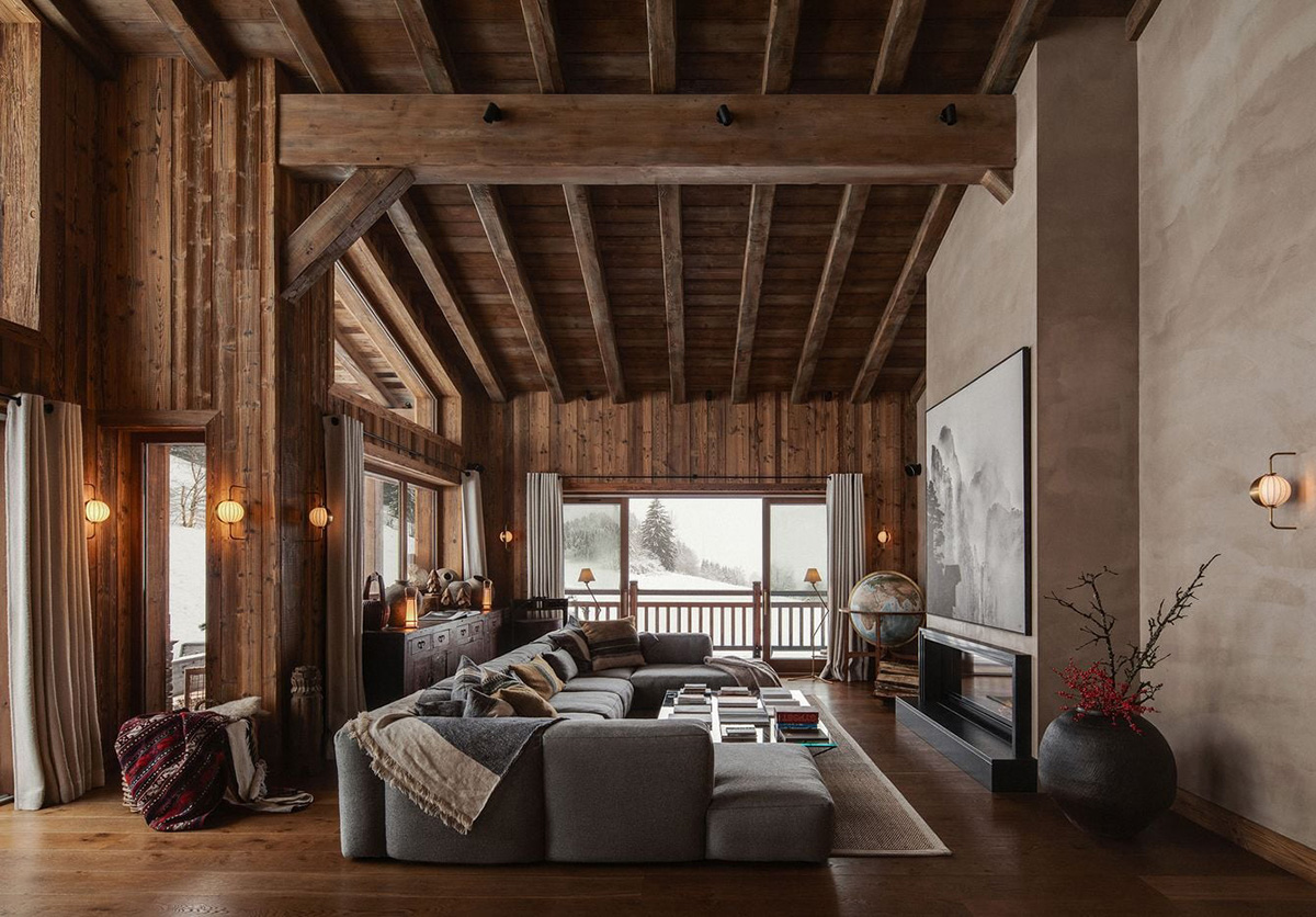 Атмосферные нотки ваби-саби и грубые деревянные поверхности в стиле рустик — драма интерьеров этого роскошного шале во Французских Альпах лежит в сочетании нескольких разных стилей и культур. В семьи хозяев есть восточные корни, поэтому помимо альпийской эстетики в их доме чувствуются нотки тибетского буддизма и дыхание Гималаев. Оштукатуренные стены, тёмные оттенки, противопоставление тёплого дерева и прохладных каменных элементов — пространство дома одновременного уютное и завораживающие, а заснеженные альпийские пейзажи лишь добавляют волшебства в атмосферу в доме. Enjoy!