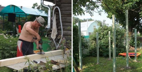 Готовим столбы, пропитываем, ставим и бетонируем