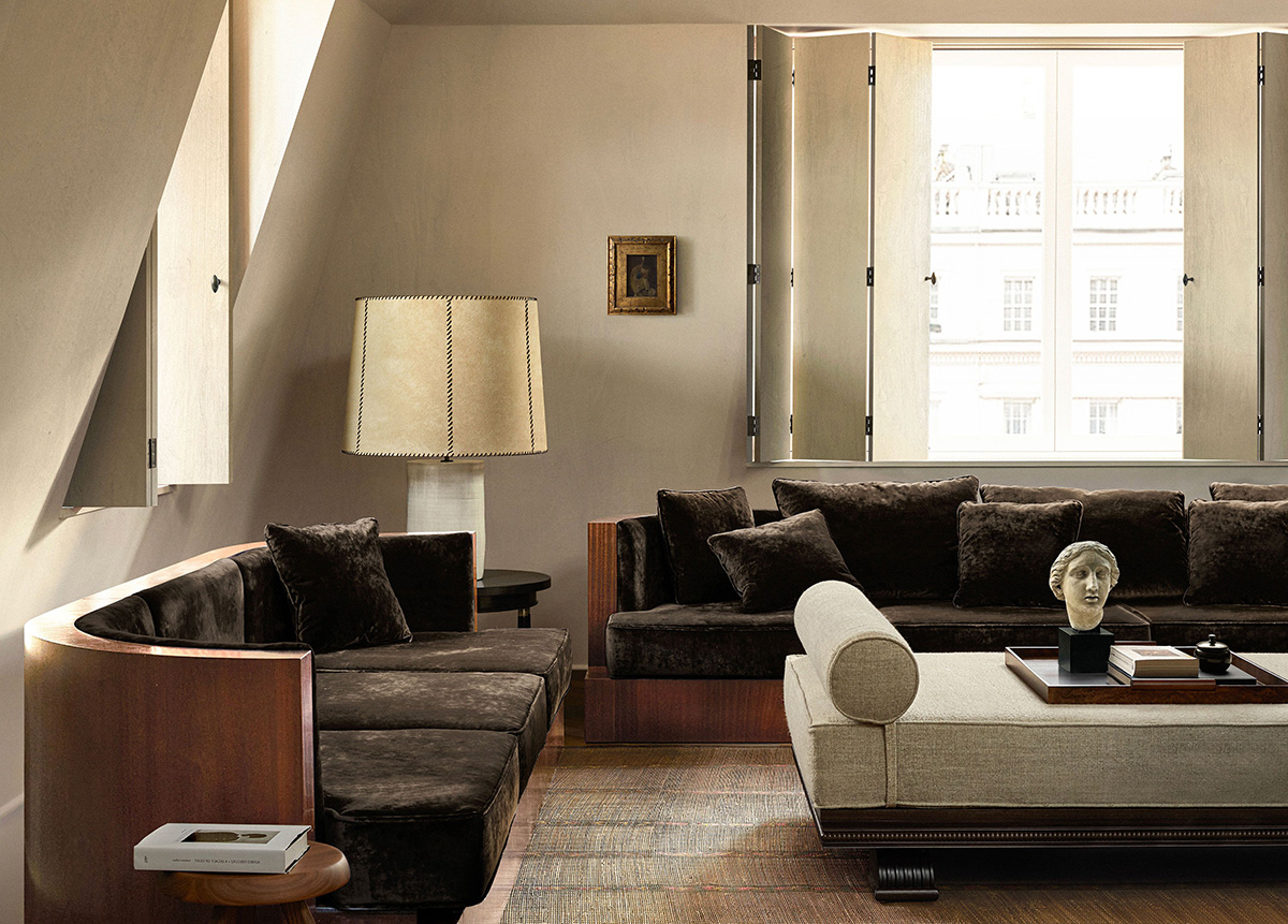 Этот интерьер в Лондоне — единственный в своём роде микс исторической английской архитектуры, модернистского дизайна и предметов искусства. Из-за большой любви хозяина к коллекционированию книг важно было спроектировать достаточно места для них — потрясающий книжный шкаф на всю стен стал одним из центральных объектов интерьера. Также стоит выделить цветовую гамму, состоящую из глубоких и интересных маскулинных оттенков, дополненных натуральным деревом и тёплым текстилем. Но самое интересное здесь — бесчисленные предметы искусства, изящно вписанные в этот современный интерьер.