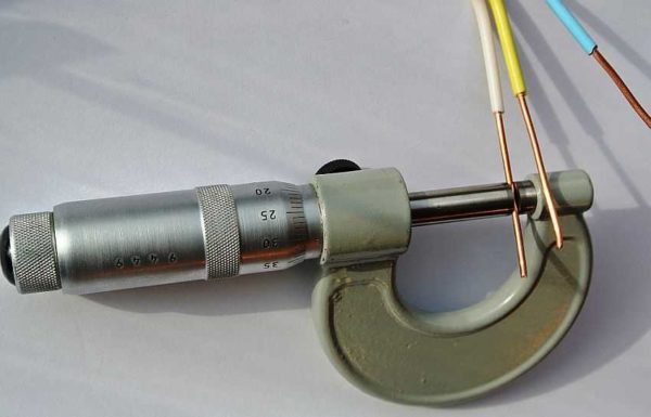 Для измерения диаметра провода подойдет штангенциркуль или микрометр любого типа (механический или электронный). С электронными работать проще, но они есть не у всех. Измерять надо саму жилу без изоляции, потому предварительно ее отодвиньте или снимите небольшой кусок. Это можно делать, если продавец разрешит. Если нет — купите небольшой кусок для тестирования и проводите измерения на нем. На очищенном от изоляции проводнике замеряете диаметр, после чего можно определить реальное сечение провода по найденным размерам.