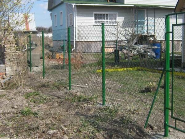 Как бы ни называлось это ограждение, а имеет оно солидное количество положительных сторон. Первый и немаловажный плюс — дешевизна. Это касается как самого заполнения — сетки, так и остальной конструкции. Чтобы натянуть сетку, фундамента не требуется. Достаточно пробурить лунки примерно на метр, вставить столб и, засыпав щебня, хорошо его уплотнить. Все, никаких бетонных работ. На большинстве грунтов такой способ установки для данного заполнения работает на «пять».