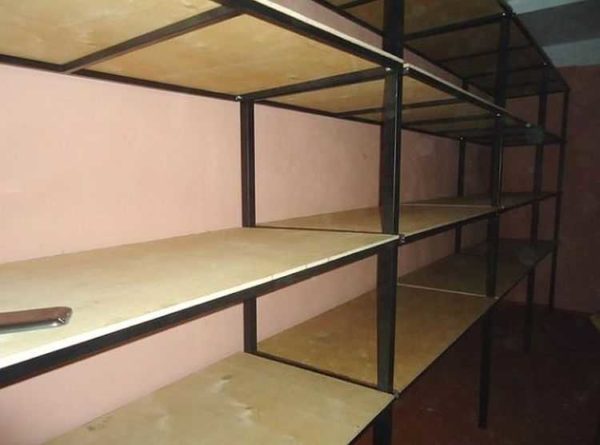 Один из вариантов — каркас из профильной трубы и полки из фанеры