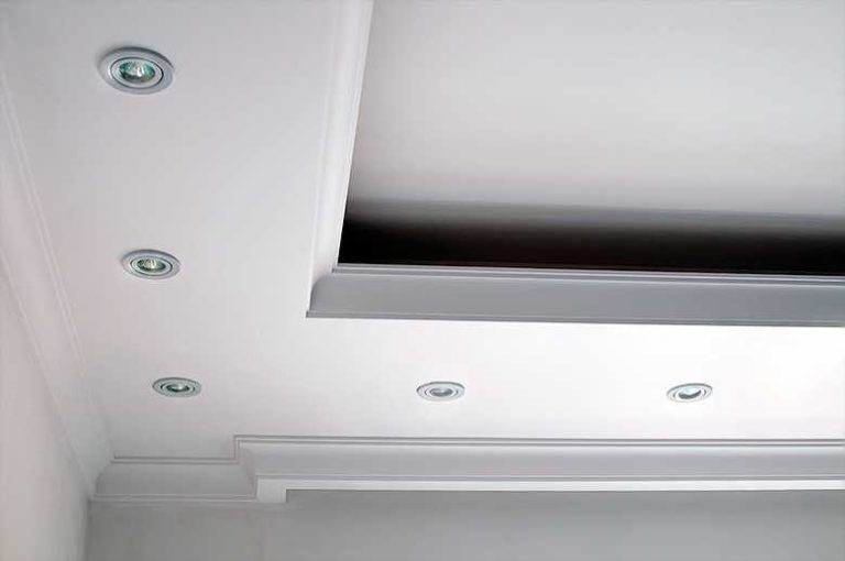 Подсветка гипсокартонного потолка бывает скрытой и открытой. Открытая – точечные светильники, которые полностью или частично видны. Скрытая потому так и называется, что видно только ее излучение. Потому при монтаже потолка из гипсокартона со скрытой подсветкой короба нижнего уровня делают с полочкой, на которой и размещаются осветительные приборы.