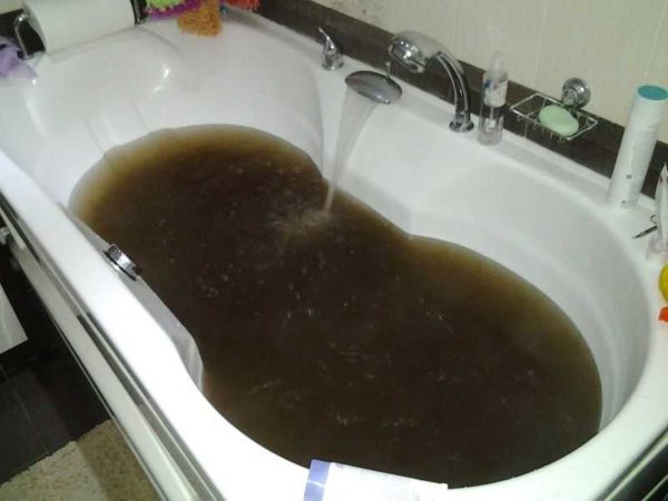 Если вода не уходит вообще, да еще переливается из одного устройства в другое (открываете воду в раковине, она появляется в ванной или начинает подниматься уровень в унитазе), засорился общий выход канализации.