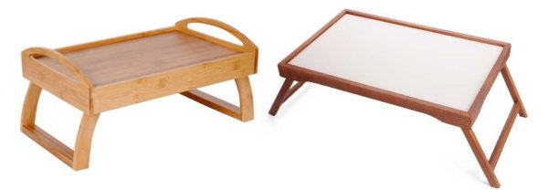 Еще кроватные столики для завтрака могут иметь разные ножки. Речь не о форме, а о конструкции. Некоторые модели складные. Они более компактны при хранении, что может быть полезным. Еще ножки бывают регулируемыми по высоте. Тоже неплохо — для высоких и низких людей удобна различная высота расположения столешницы.