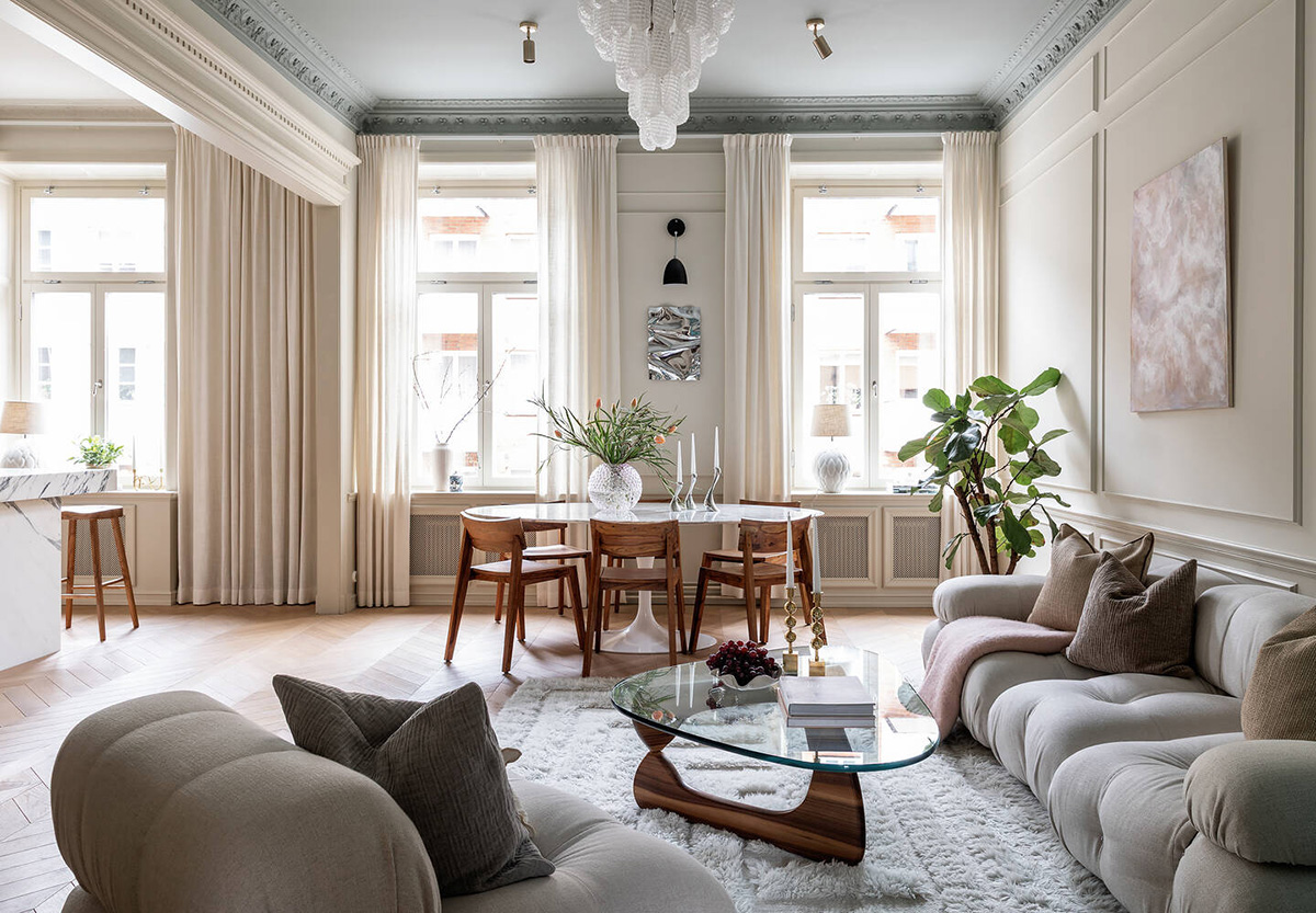Лепнина, цветной потолок и стильный декор: квартира в Стокгольме (90 кв. м)