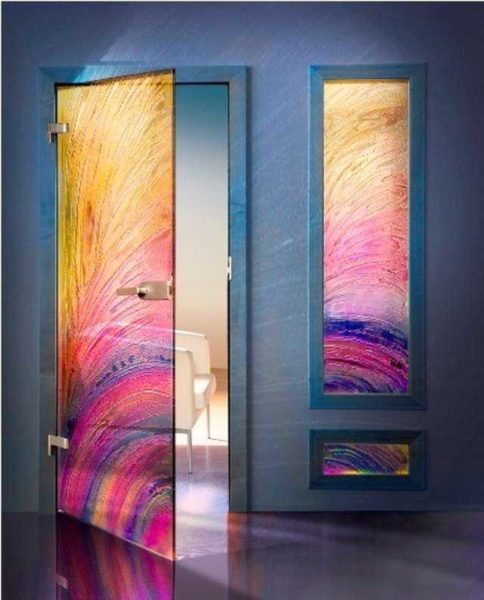 Вот такими могут быть стеклянные межкомнатные двери…это к вопросу о многообразии вариантов оформления - Простота ухода. Мыть можно любыми моющими неабразивными средствами, можно тереть щеткой (если позволяет отделка, само стекло — без проблем).