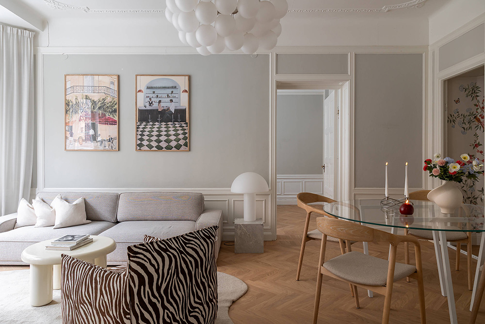 Элегантные пространства старого дома, дополненные мягким современным декором — эта квартира в центре Стокгольма является примером утончённого обновления исторического жилья. Среди архитектурных достоинств жильё выделяется роскошное эркерное окно в гостиной, прекрасны также лепнина с молдингами и французский паркет. Цветовая гамма квартиры спокойная и нейтральная, с приятными прохладными нотками, в то время как мебель и декор изысканные и стильные, с вкраплениями предметов из натурального дерева и предметов искусства. Красиый интерьер!