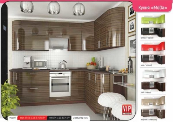 Размеры — ширина, глубина, высота — бывают разные, что и позволяет подобрать модульную кухню как в малогабаритное помещение, так и в просторное