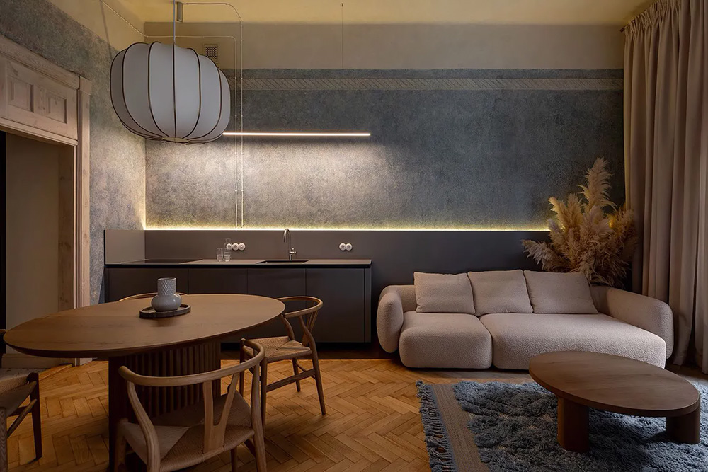 Настоящая красота интерьеров этой квартиры в историческом доме во Львове долгое время была скрыта за слоями предыдущих ремонтов, пока студия Myks не взялась за проект её обновления. Дизайнеры почистили стены от всего лишнего и обнаружили уникальную роспись, которая выглядела словно привет из прошлого. Было решено оставить эту декоративную особенность практически в оригинальном виде — вместе с «родными» дверьми, которые также были бережно отреставрированы. Такую смелую и атмосферную основу дизайнеры дополнили современным дизайном, который создал эффектный контраст между прошлым и нашим временем. Enjoy!