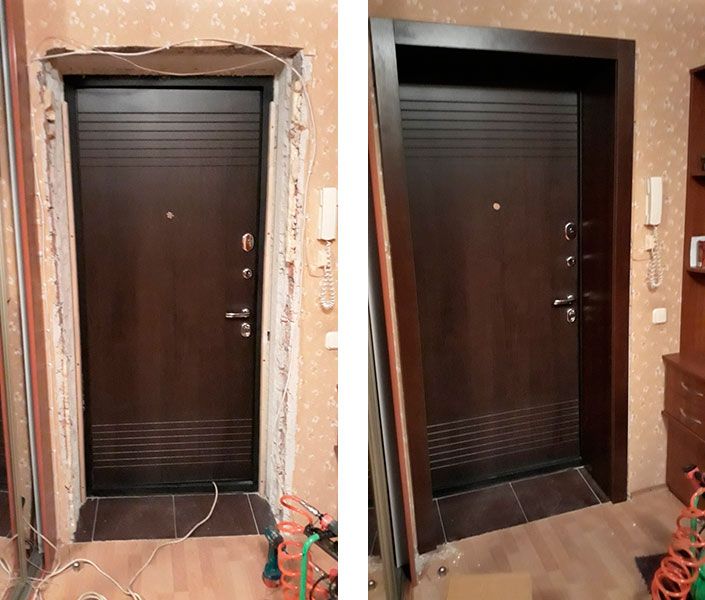 Откосы входной двери могут иметь различные варианты отделки, чаще всего используются следующие виды материалов: