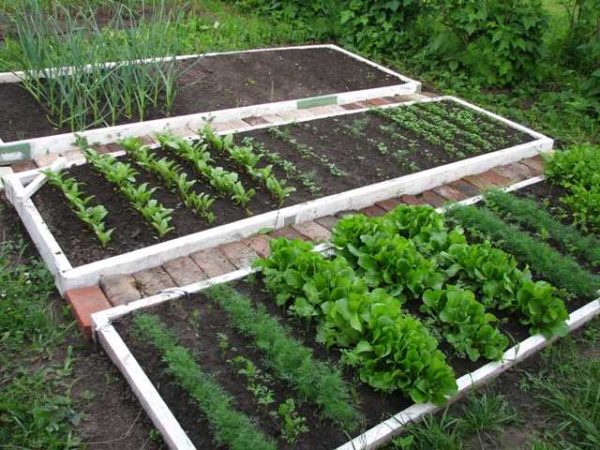 - Грядки-контейнера. Их параметры: ширина до 1 метра, высота – 30–40 см или 70–80 см, длина — любая. Материал может быть любой.