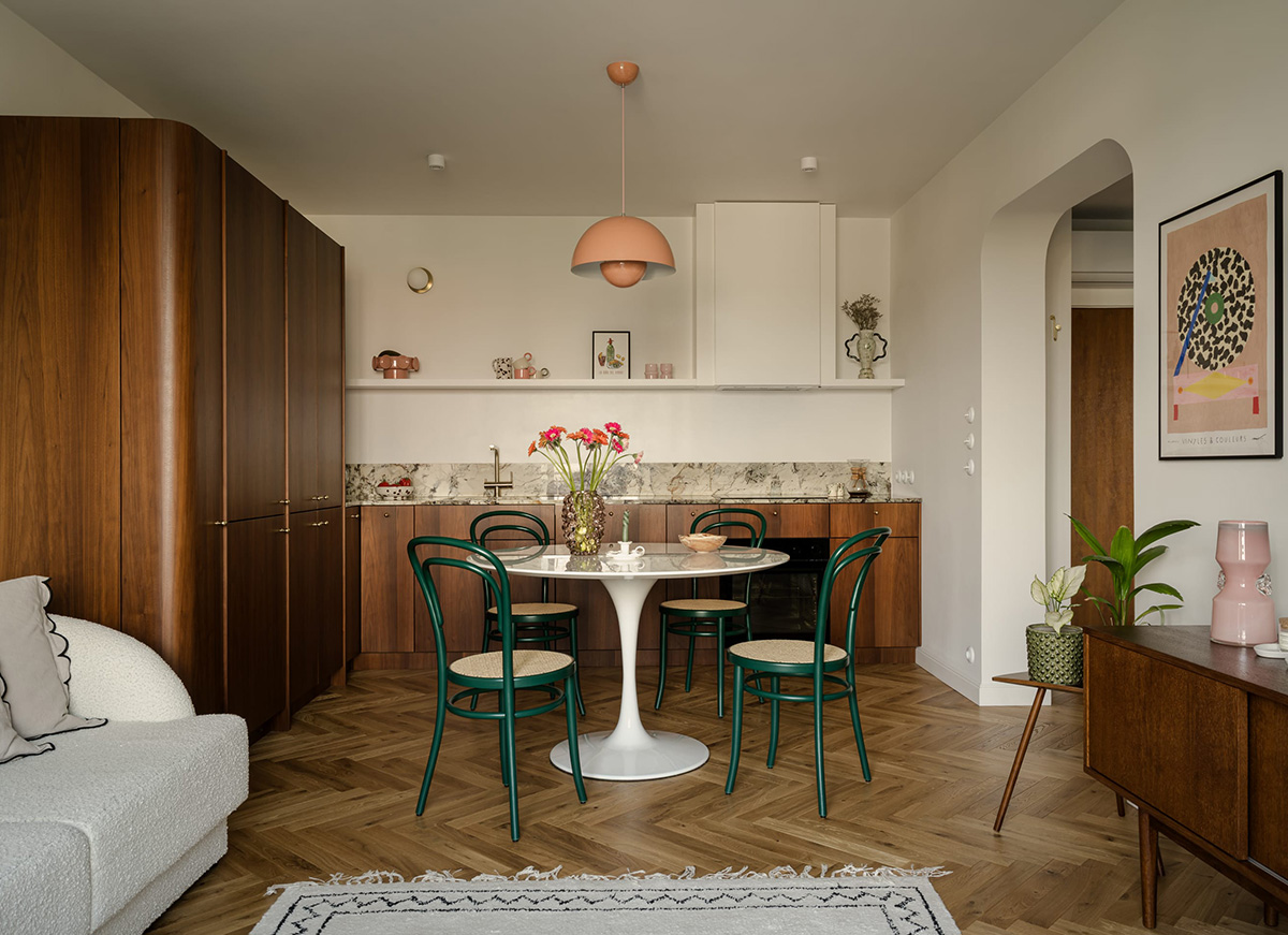 Ореховое дерево и ретро-нотки в небольшой польской квартире (56 кв. м)