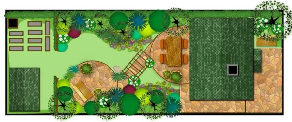 Если участок еще пуст, продумываете все мелочи: где будет въезд, как на участке расположится дом, туалет, другие постройки. Нарисовав все строения, прорисуйте дорожки. Прямые делают редко — их тяжелее обыгрывать в ландшафте. Изогнутые, с плавными линиями помогут организовать интересные местечки и посадки. На плане не забудьте про коммуникации — водопровод, канализация, система полива и т.п. Потом постепенно добавляйте элементы ландшафтного дизайна, прорисовывая их детали.