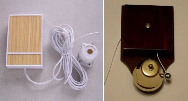 В беспроводных электрозвонках кнопка и внутренний блок физически не связаны. В них установлены миниатюрный передатчик (в кнопке) и приемник (во внутреннем блоке). Связываются они между собой на какой-то частоте. Есть два типа питания беспроводных звонков: