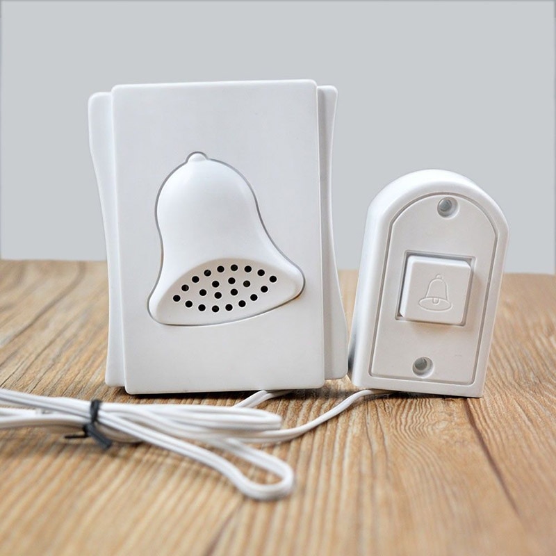 Эти устройства отличаются способом подключения, функциональностью, возможностями и сроком службы. Проводной прибор считается самым практичным из-за бюджетной стоимости и простоты монтажа. Устройство состоит из нескольких элементов: кнопка, звуковая панель, провод. Кнопочный прибор фиксируется за входной дверью, провод тянется в квартиру или дом, а там присоединяется к панели, издающей звук.