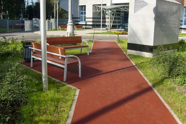 Дорожка из резиновой крошки выглядит очень привлекательно и по ней удобно ходить