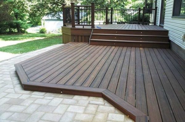 Относительно недавно появился древесно-полимерный композит или ДПК. Это смесь древесных волокон и полимера, в которую добавлены красящие пигменты. Из полученной массы методом экструзии формируются доски. Покрытие натуральным не назовешь, так как используются полимеры. Зато оно отвечает большей части требований. Сразу скажем, что качественный декинг из ДПК дешевым не назовешь.
