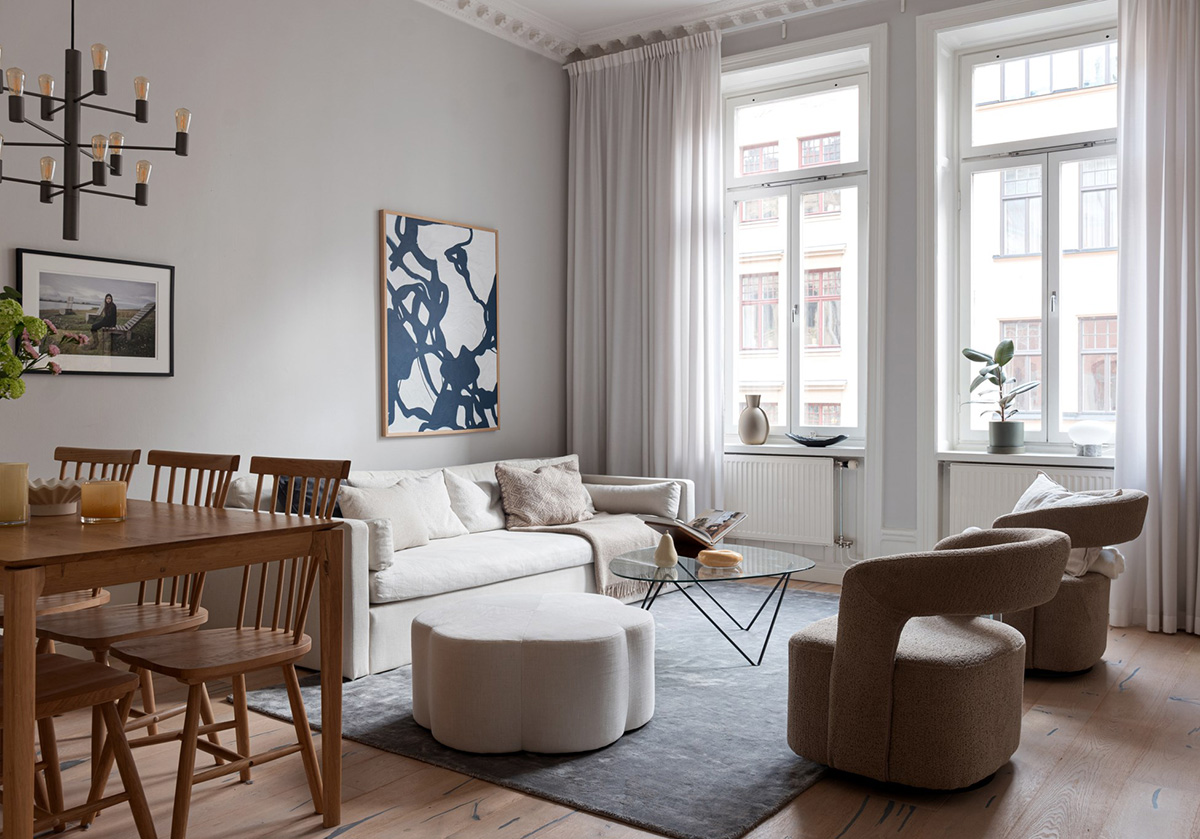 Эта шведская квартира не из тех, в которой хочется подолгу анализировать дизайнерские решения. Её интерьер довольно простой и понятный, составленный из знакомых ингредиентов. Зато в нём царит спокойная и очень приятная атмосфера. Дизайнера смогли найти замечательный микс скандинавской лаконичности, нейтральных оттенков и элегантных ноток современного дизайна. Enjoy!