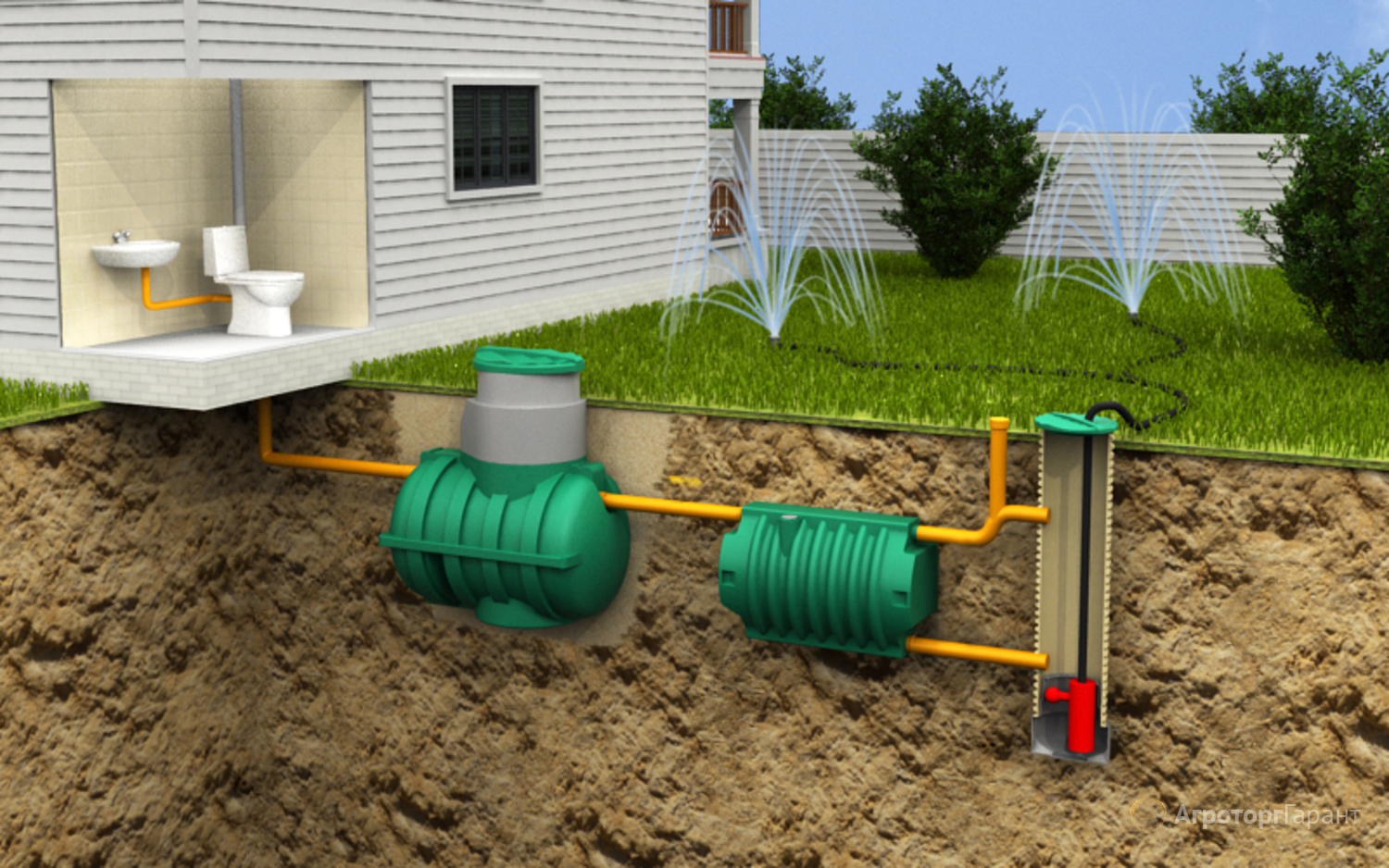 - Сбор сточных вод: Все сточные воды из дома (от раковин, душей, унитазов и т.д.) попадают в септик.