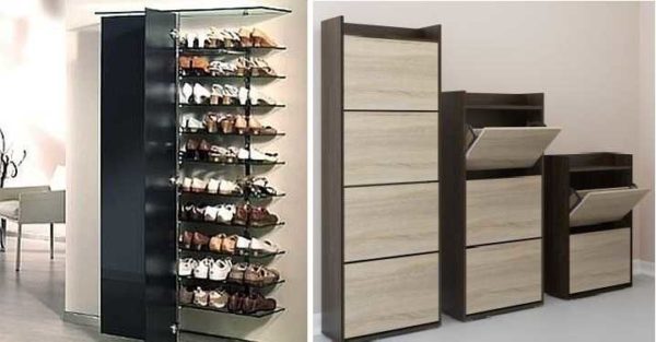 Система хранения обуви закрытого типа может быть сделана по-разному. Все модели можно разделить на несколько групп: