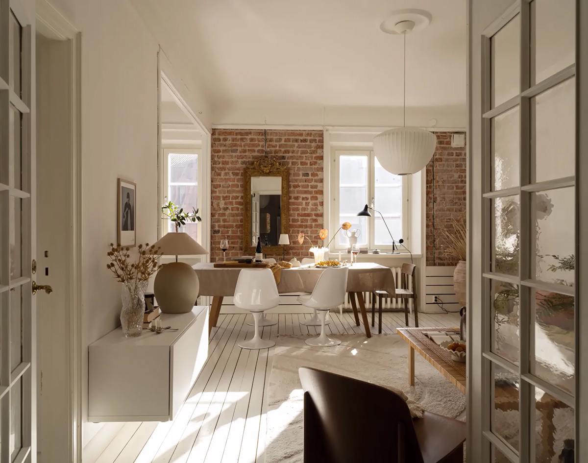 Скандинавский бохо: небольшая квартира с кирпичной стеной в Гетеборге (55 кв. м)