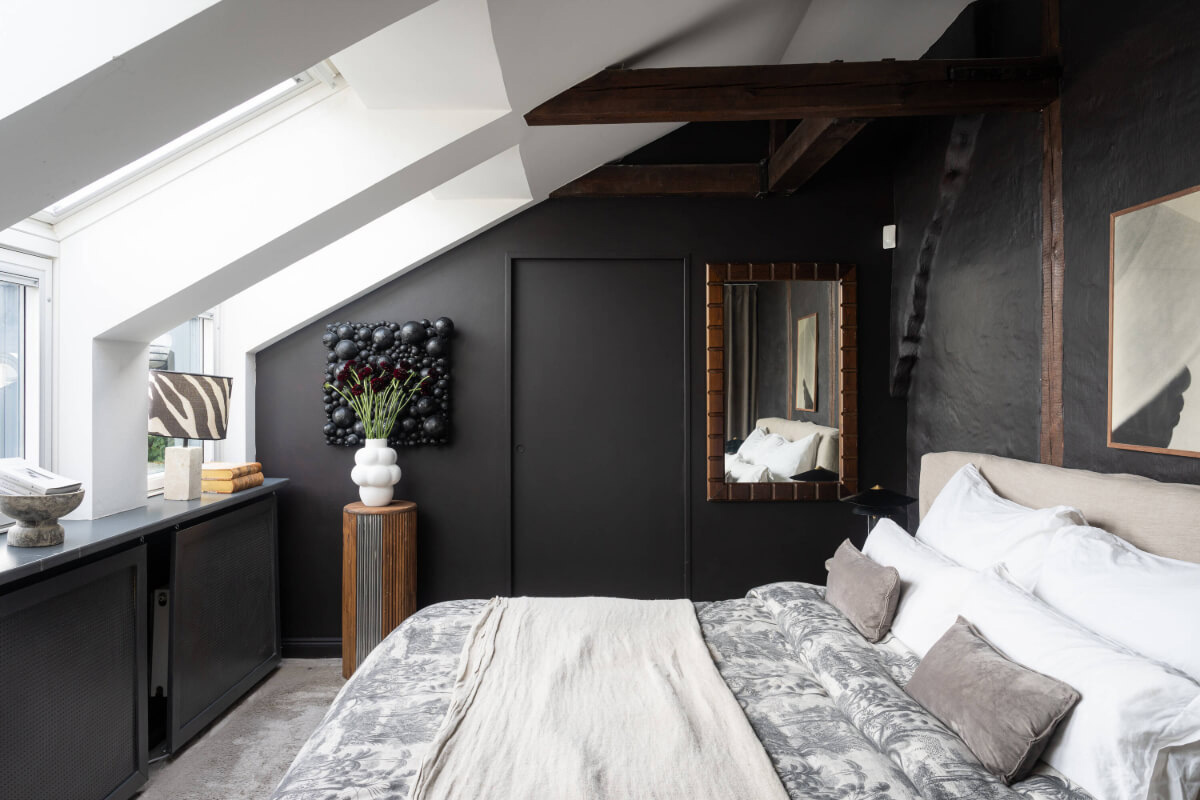 Источник — http://www.pufikhomes.com/ru/2025/04/skoshennye-potolki-i-chernye-steny-mansarda-v-stokgolme-82-kv-m/