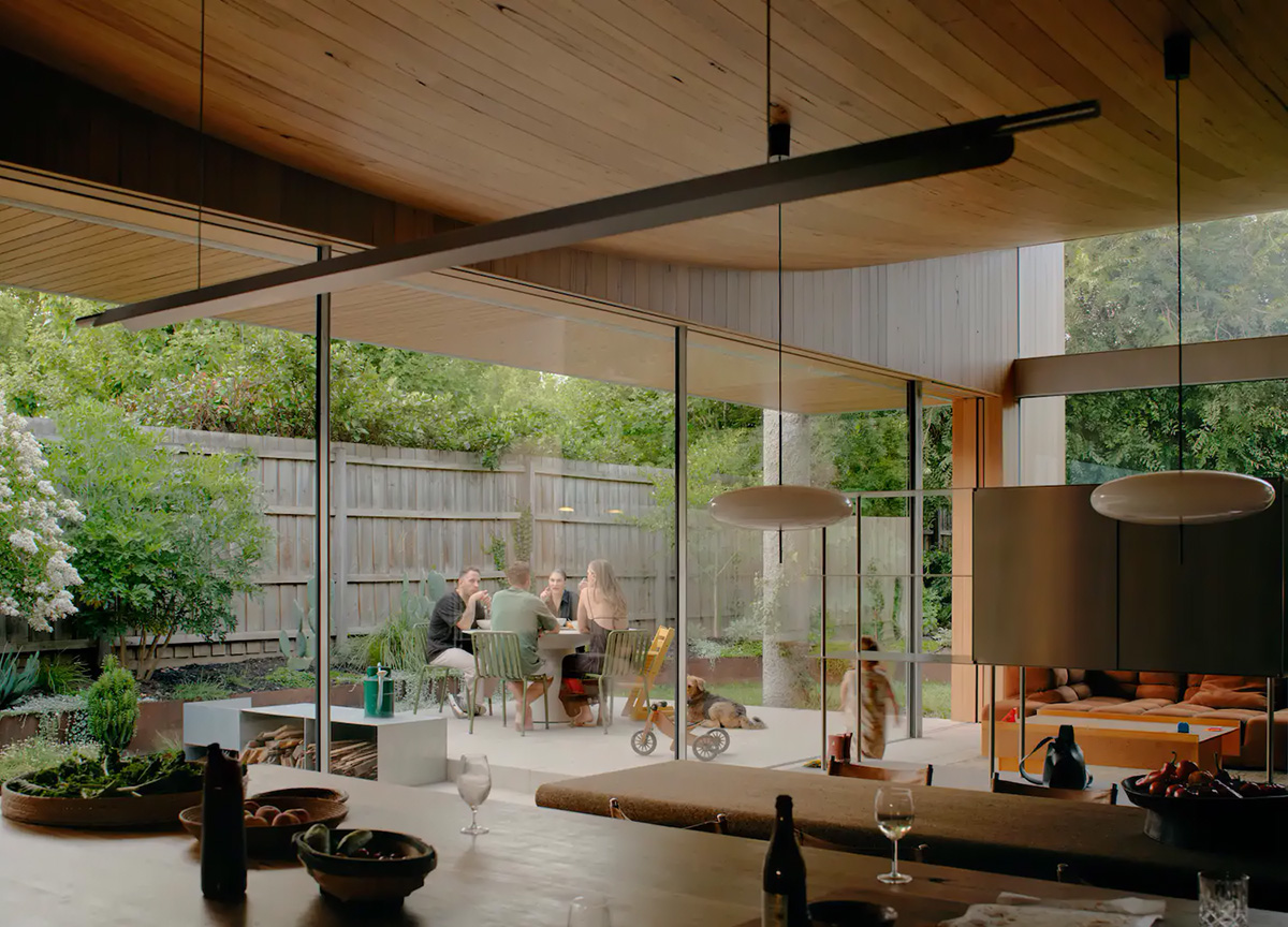 Австралийский архитектор Chris Stribley сразу знал, что не хочет для себя большой дом, а главное для него — гармония архитектуры и природы. Так, дом его семьи в Мельбурне не может похвастаться впечатляющим внутренним пространством, зато жизнь здесь плавно перетекает из интерьеров на улицу и наоборот, создавая идеальную среду для насыщенной совместной жизни. Стеклянные стены делают небольшой, но уютный сад важной составляющей дизайна интерьеров, в то время как открытые террасы прекрасно увеличивают полезную площадь дома. Enjoy!