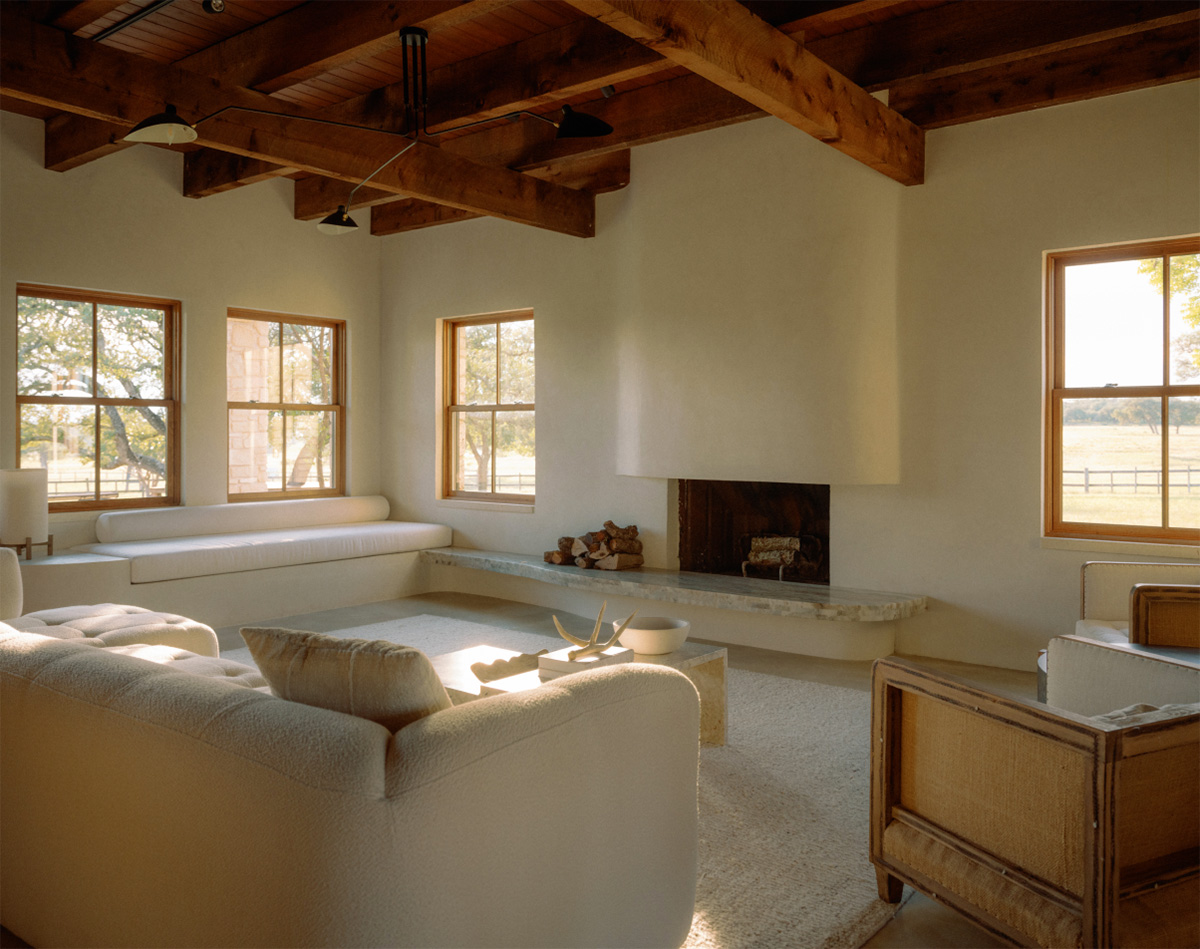 Мода на спокойные натуральные интерьеры со средиземноморскими нотками добралась и до США. Этот дом в Техасе — современный взгляд на дизайн традиционного американского ранчо. Внутреннее пространство дома получилось очень тёплым и минималистичным, но не лишённым характера благодаря массивным балкам и каменной кладке на некоторых стенах. В мебели и декоре преобладают модные скандинавские модели и лаконичные формы. Прекрасный загородный дом!