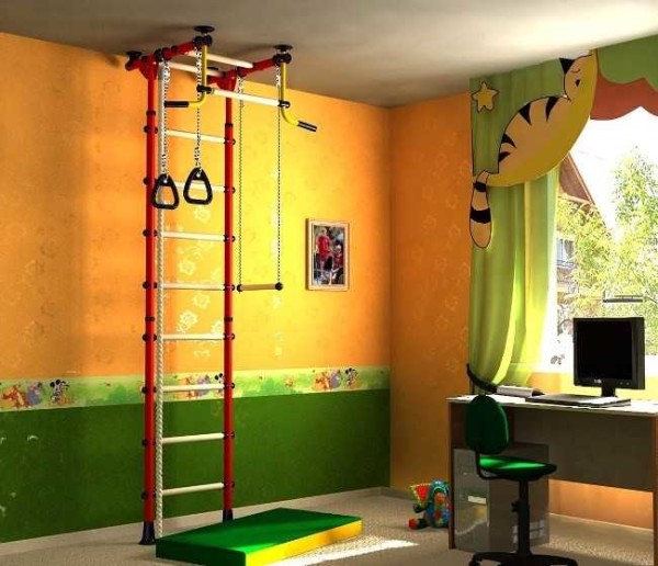 Вариант спортивного уголка для маленькой площади комнаты