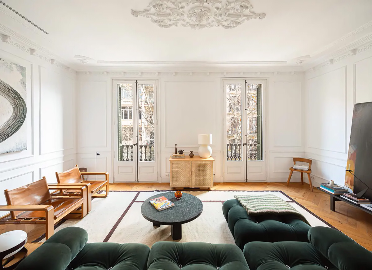 Эта квартира расположилась в старом доме в самом сердце старого города Барселоны, поэтому заслуживала особого подхода во время недавнего ремонта. Для начала дизайнеры восстановили лепнину и настенные молдинги, которые подчеркиваю высоту потолков и вневременную красоту пространств. Далее, они наполнили интерьеры изысканным миксом современной мебели, дизайнерского освещения и предметов искусства. Дизайн для людей с утончённым вкусом!