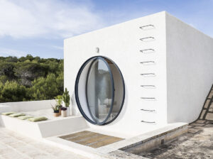 В небольшой городке Нардо в регионе Апулия, что на юге Италии, расположился вот такой необычный домик архитектора площадью всего 75 кв. м. Его оригинальный облик сразу привлекает внимание, и в первую очередь это круглое окно, словно большой глаз, через которое хозяин будто подглядывает за Ионическим морем. На фасаде также можно заметить минималистичную лестницу, словно уходящую …