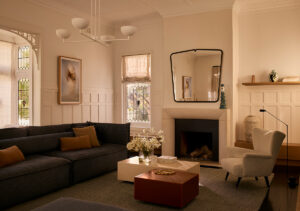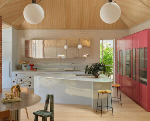 Главна фишка обновлённого дизайна этого старинного дома в Мельбурне — интересные цветовые акценты. Кухонные поверхности цвета неба, ярко-красный камин, оливковые стены и изумительный цветочный потолок — каждая комната дома хранит свой собственный секрет, который приятно удивляет. И это не считая оригинальный и часто единственных в своём роде предметов мебели и декора. Давайте же рассмотрим всё …
