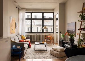 Компактный лофт в Стокгольме с цветными вставками в декоре