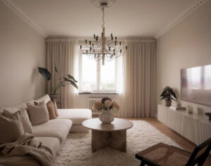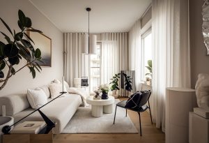 Современный скандинавский интерьер в мягкой нейтральной гамме (46 кв. м)