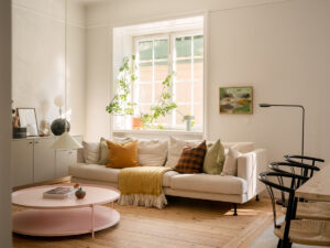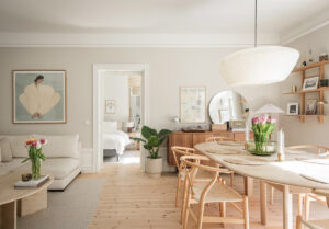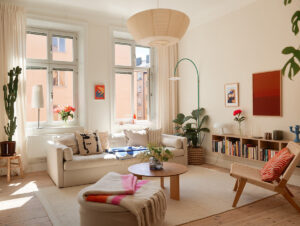Угловое расположение квартиры означает больше окон в интерьере, а это в свою очередь значит, что больше естественного света попадает внутрь. Эта квартира в Стокгольме с угловой гостиной как раз такая — очень светлая и уютная. Кроме ласкового дневного света можно так же отметить лёгкий и непринуждённый скандинавский декор, состоящий из натуральных материалов, рамок и ретро-ноток …