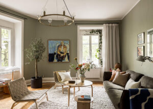 Оттенки зелёного и тёплые акценты: квартира в Швеции (87 кв. м)