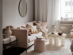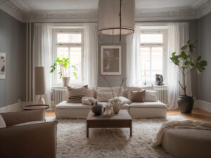 Тёплый скандинавский интерьер в песочных тонах (74 кв. м)