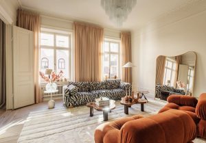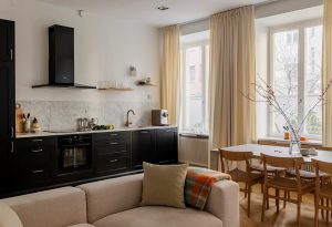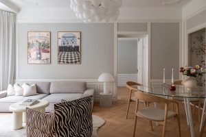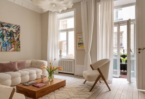 Спокойная мягкая основа и яркие настенные постеры — эта шведский интерьер выглядит одновременно и нежным, и живым благодаря прекрасно подобранному декору. Дизайн хоть и монохромный по гамме, но красивая и утончённая по стилю: модная мягкая мебель, стильный кофейный столик, красивый текстиль. Красок и жизни интерьерам добавляет смелое современное искусство на стенах, а естественный свет приятно …