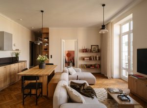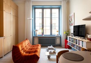 Всё внимание в этой шведской квартире приковано к гостиной — это самый эффектный, смелый и интересный интерьер в доме. Здесь у нас и атмосферные тёмно-синие стены, и экспрессивные настенный декор в рамках, и сохранившийся старый камин (кстати, работающий), и даже японские мотивы в декоре. Одним словом, практически интерьер с обложки. А вот остальные комнаты довольно …