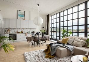 Эффектный двухуровневый лофт в Стокгольме с роскошным окном на всю стену