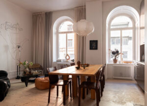 Роскошное пространство с высокими потолками и арочными окнами — эффектная, но не единственная фишка этой квартиры в Стокгольме. Интерьер наполнен лёгкими и интересными творческими нотками, которые выделяют его на фоне типичных скандинавских квартир. Одна только роспись на стене в гостиной чего стоит! В мебели и декоре также мало знакомого и стандартного — дизайнеры постарались подобрать …