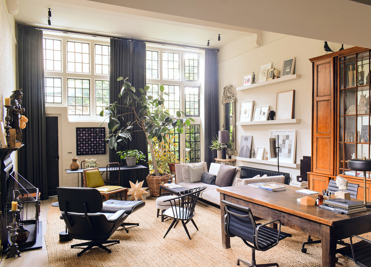 Интерьеры Лондона не перестают удивлять. Среди всего великолепия многочисленных викторианских и георгианских таунхаусов, исторических особняков и стильной современной архитектуры, часто можно найти и довольно уникальные объекты — такие, как этот лофт, расположенный на противоположной от Вестминстерского аббатства стороне Темзы. Его главное достоинство — в потрясающем пространстве с высокими потолками и антресольным уровнем, которое интерьер унаследовал от старинной художественной школы 19 века, функционировавшей здесь в прошлом. В интерьере царит творческая атмосфера, а роскошные индустриальные окна, которые выходят на собственный сад на заднем дворе, дарят море вдохновения. Enjoy!