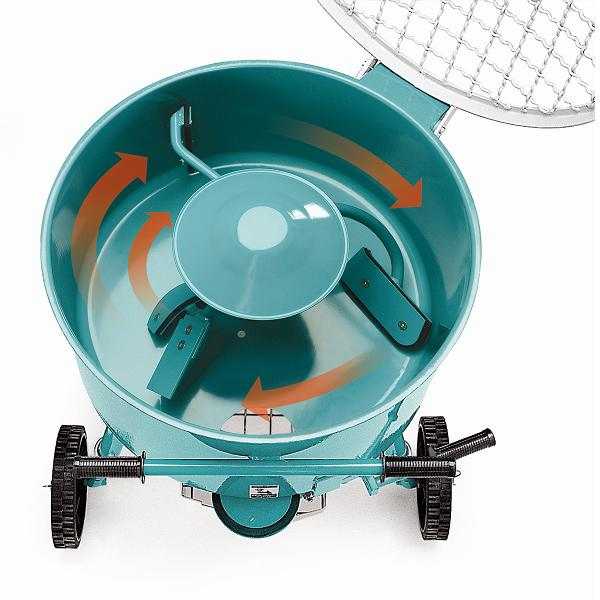• Бетономешалку часто надо перемещать по участку. В большинстве моделей имеются колеса. Понятное дело, что чем они больше, тем проще вам будет перетаскивать ее с места на место.