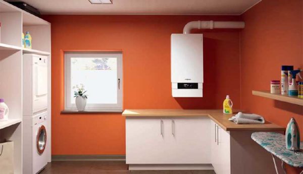 По способу установки газовые котлы бывают напольными и настенными. Настенные — компактные установки, размером с небольшой кухонный шкафчик. Они не требуют оборудования отдельного помещения, могут быть установлены в кухне или в другом подходящем помещении. Максимальная мощность настенного газового котла — 30-35 кВт. Этого обычно хватает на обогрев помещений общей площадью 250-350 кв. м.