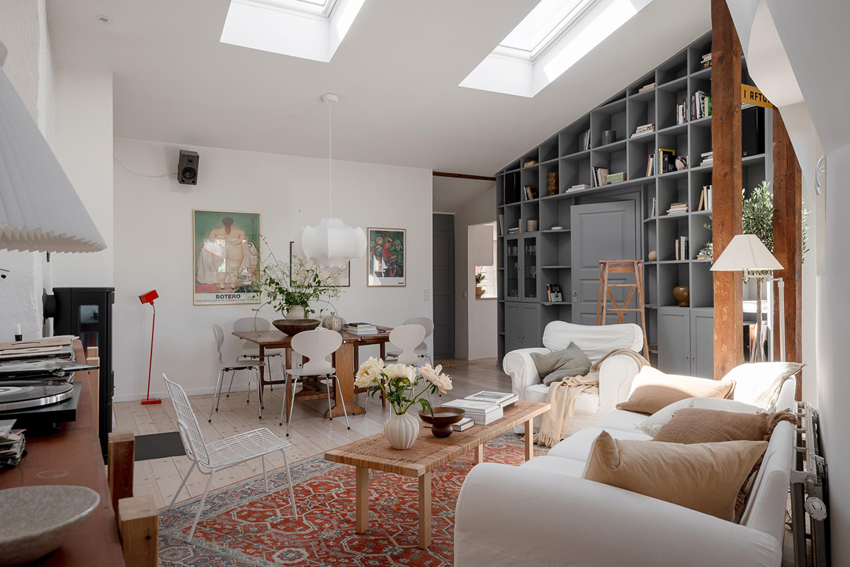 Источник — http://www.pufikhomes.com/ru/2025/06/vysokie-potolki-i-knizhnyj-shkaf-svetlaja-mansarda-v-geteborge-70-kv-m/